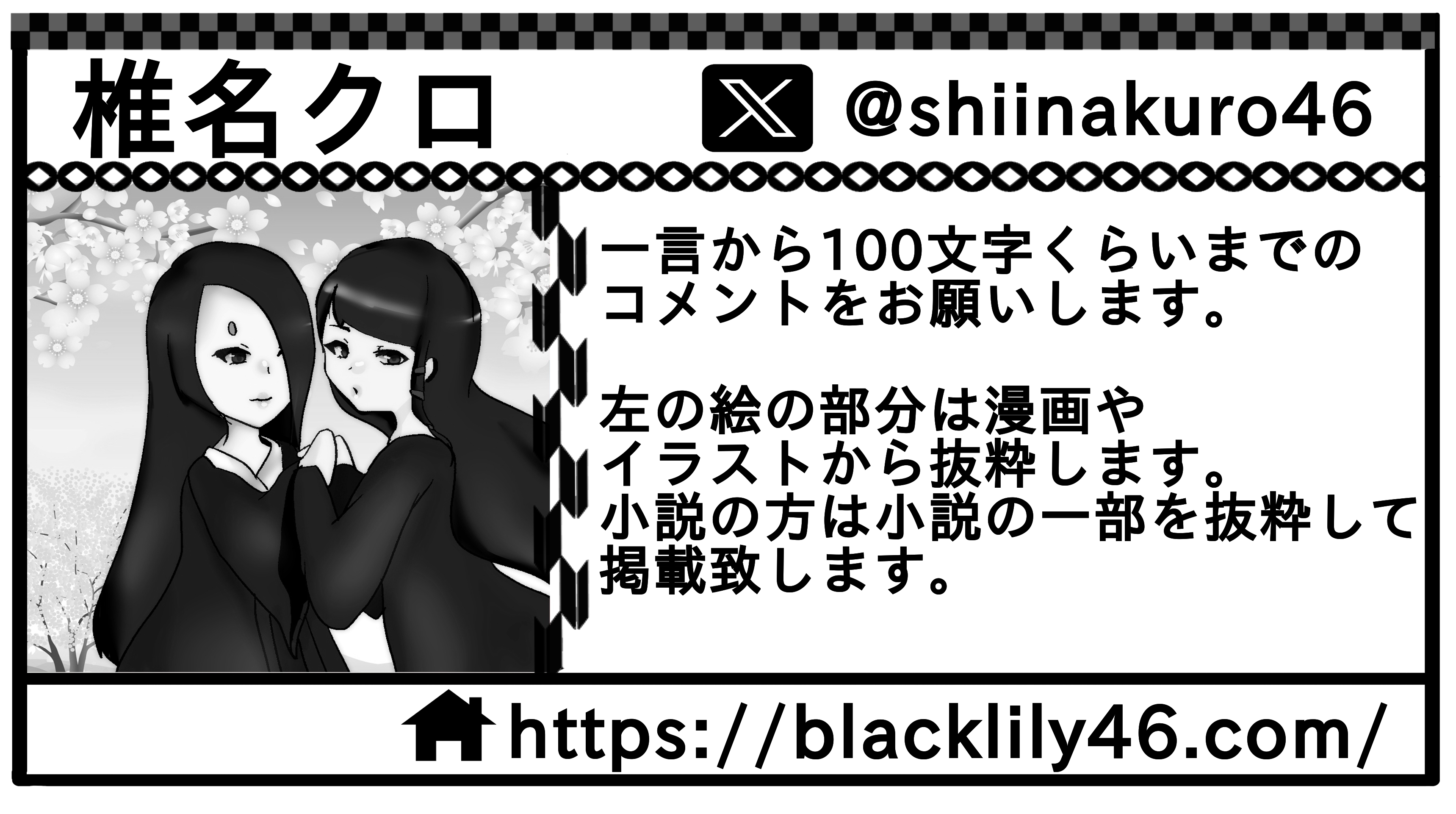 ・イラスト、詩は1ページからOK→漫画や小説は2ページから16ページまで(なるべく偶数ページでお願いします)